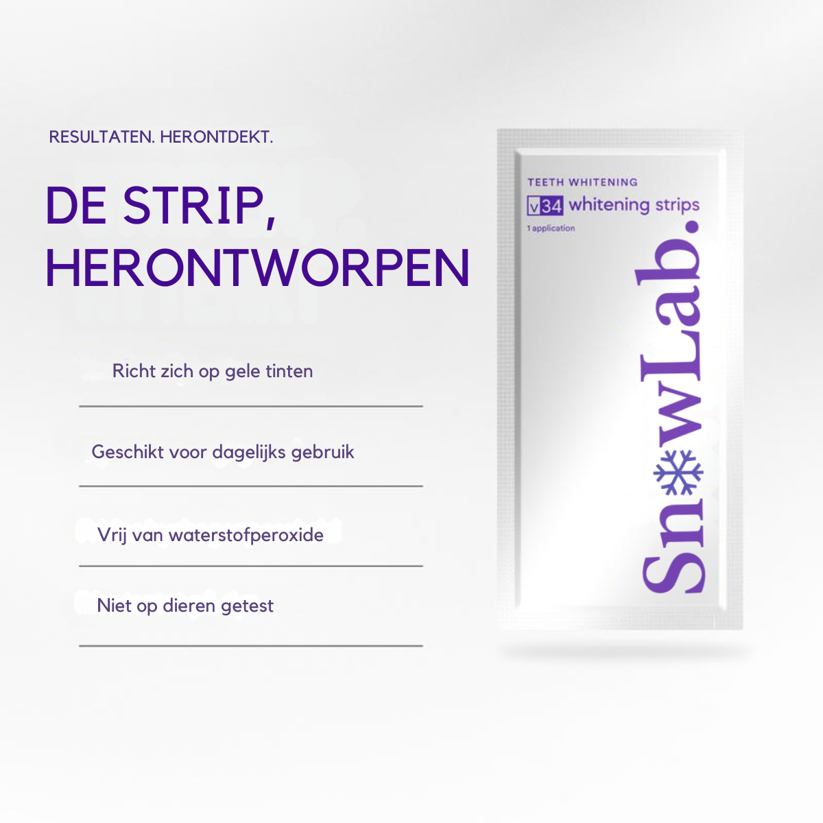 SnowLab biedt professionele tandenbleking voor thuis. De innovatieve formule zorgt voor sneller wittere tanden, veilig en zonder irritatie zoals bij traditionele strips. Voor een natuurlijk witte en frisse glimlach, elke dag!